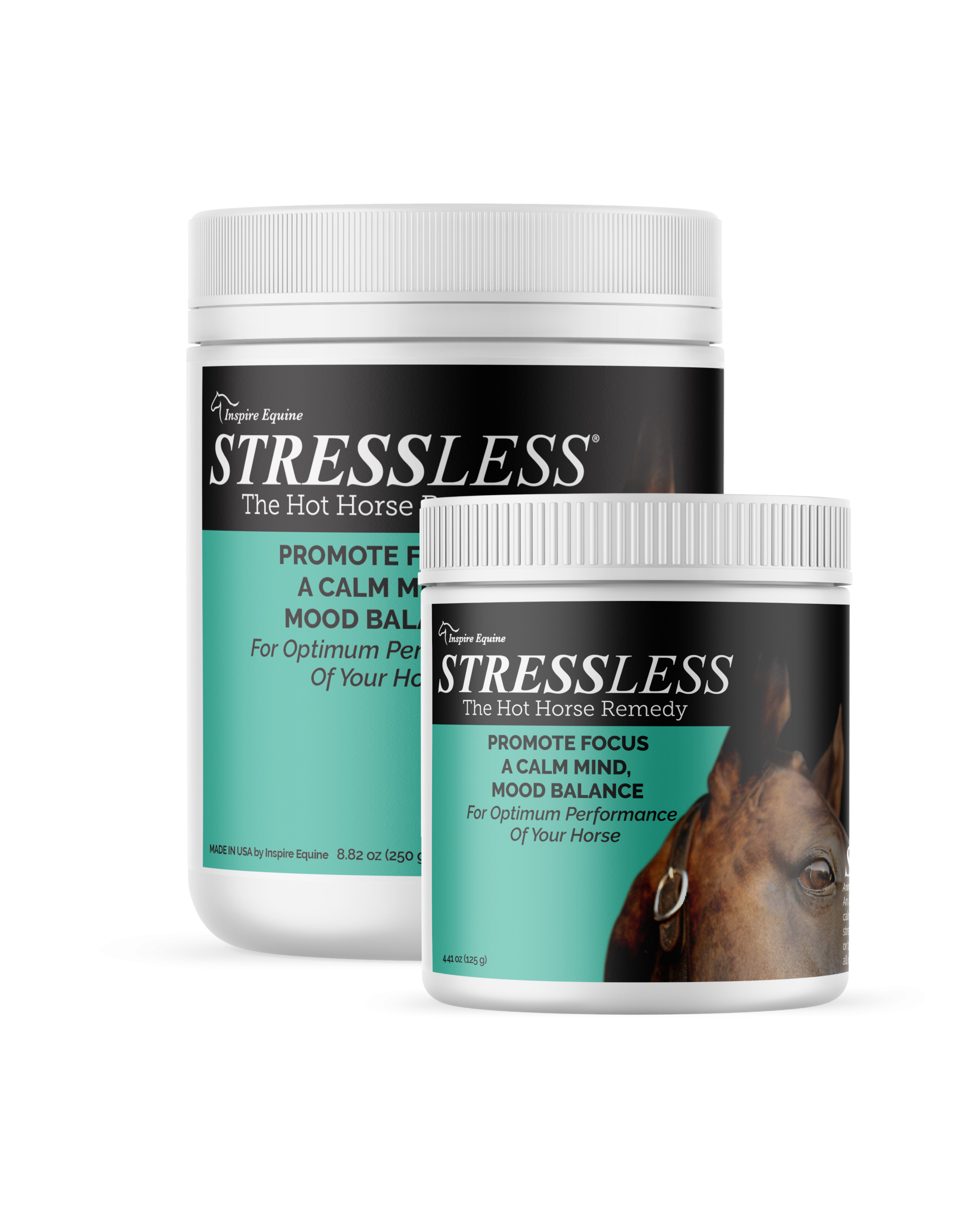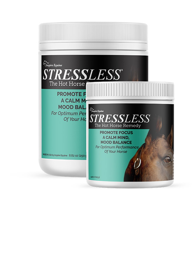 StressLess® can help your anxious horse be happier and healthier! The all-natural StressLess® supplement promotes a calm mind, increased focus, and a balanced mood for a happier horse—a partner poised for success in the showring, on the trailer, and in the barn. Learn how StressLess® for horses can help you! Developed and made in the U.S., this miracle for equine mental health was first conceived by a group of research veterinarians, trainers, pharmaceutical executives, and horse owners.
